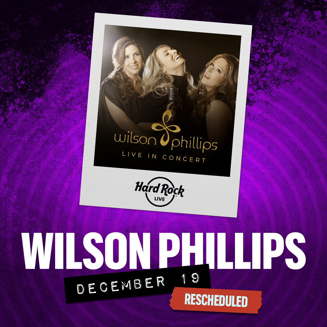 Due to an unforeseen medical surgery, ‘90s pop group Wilson Phillips is rescheduling their Sept. 20 stop at Hard Rock Live inside Hard Rock Hotel & Casino Tulsa to Friday, Dec. 19 at 8 p.m.