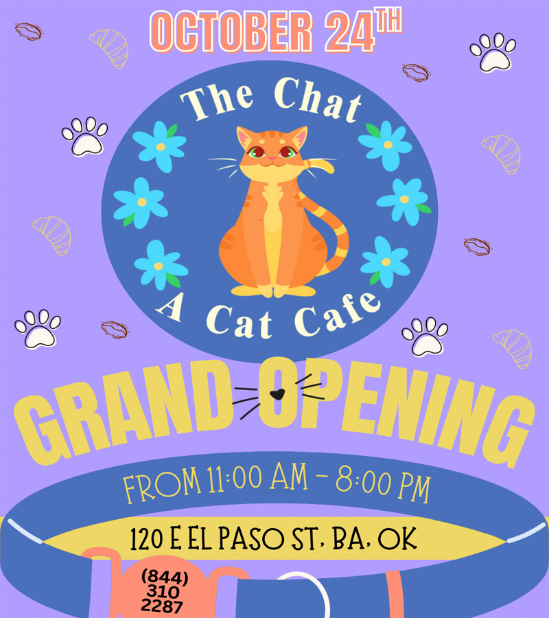 Get ready for something purr-fectly fun in Broken Arrow! The Chat – A Cat Café is opening its doors, and it’s not your average coffee spot.