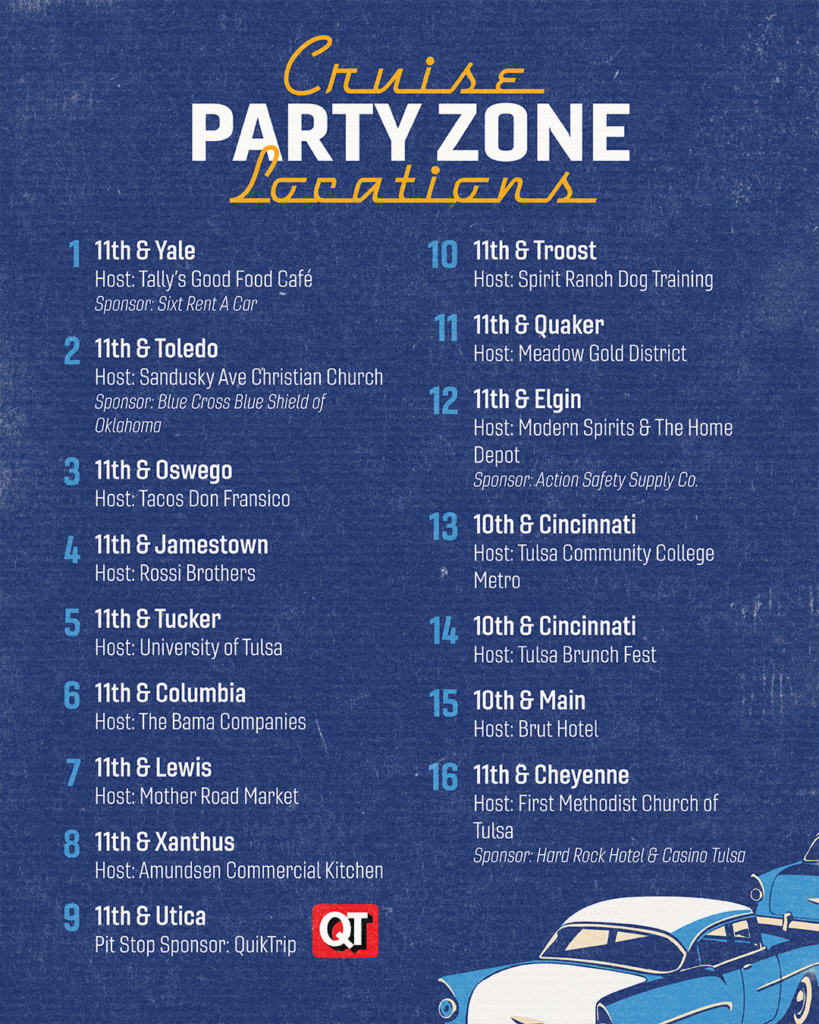 Tulsa’s Route 66 Capital Cruise — KTSO will broadcast live from the starting line starting at 7am! The parade travels from 11th & Yale to 11th & Denver. Cars roll out at 8 AM with 16 Party Zones to enjoy the parade from!